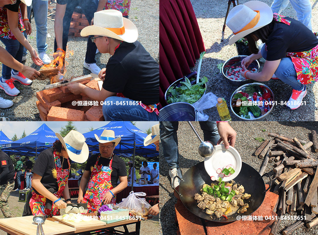 每个团队用采买的食材,自己搭建炉灶,钻木取火、埋锅造饭,制作一顿特殊的午餐。每个团队制作四(六)菜一汤,制作完成,各组分享团队美食,美食评选,为厨神颁奖。